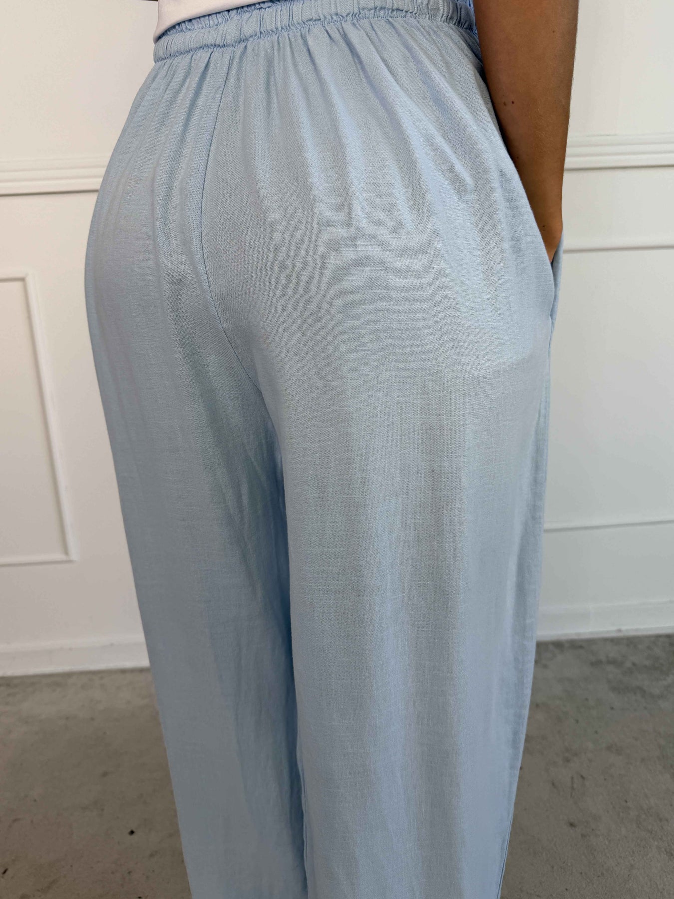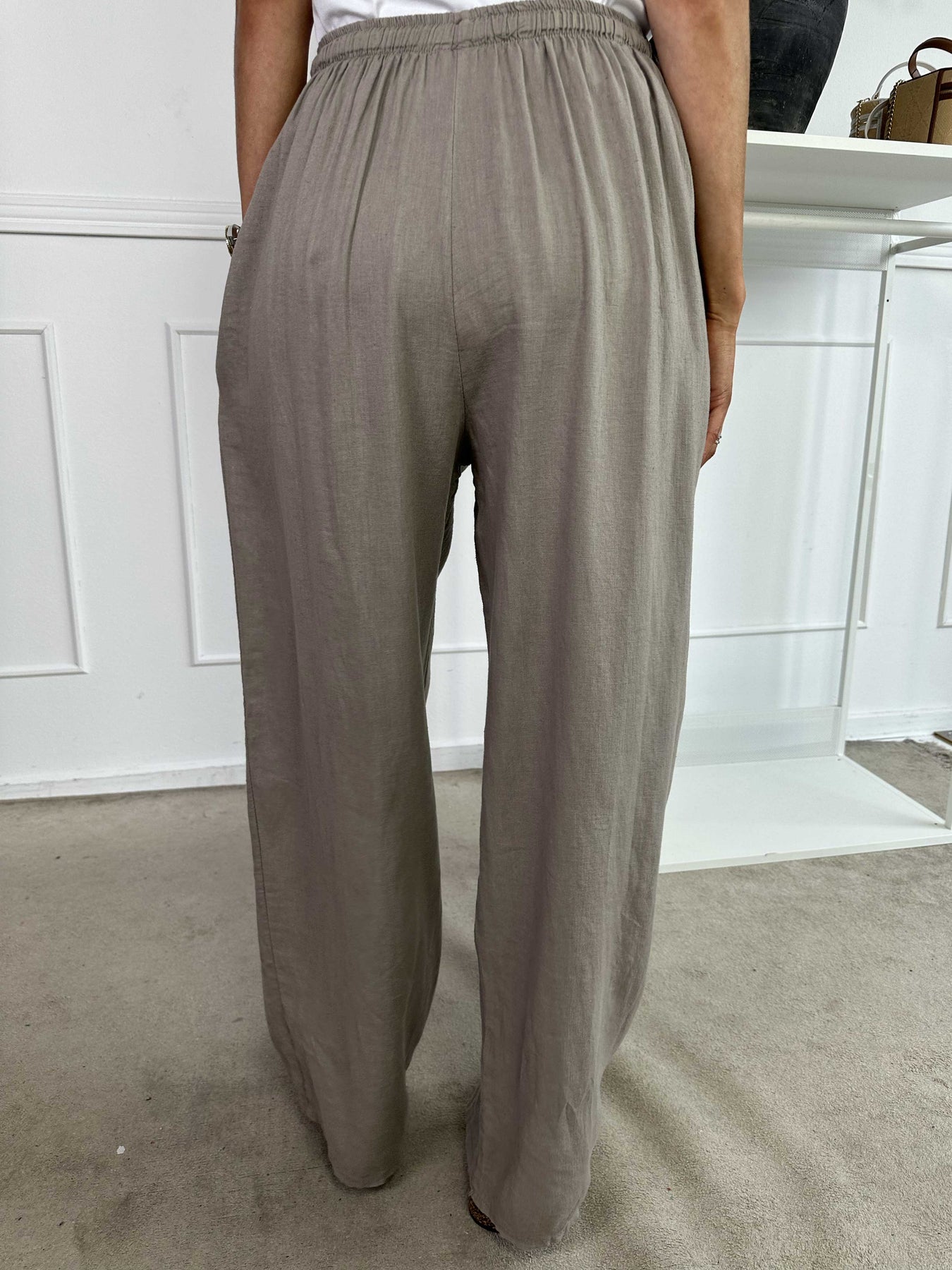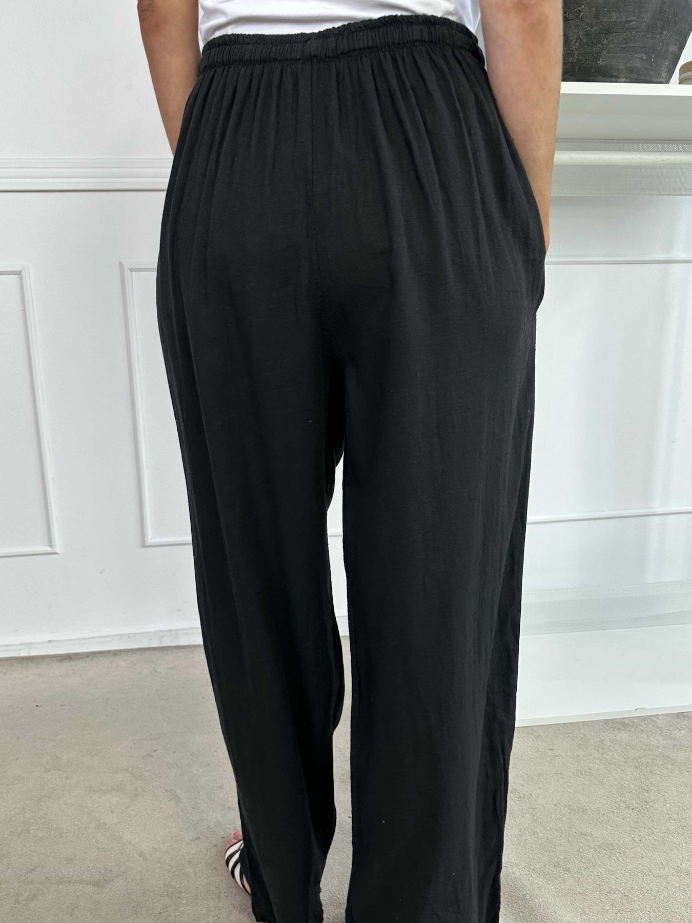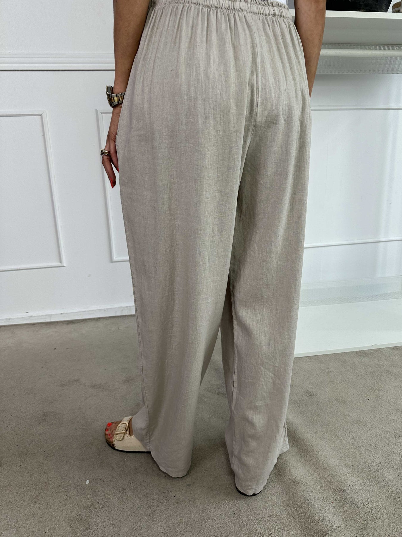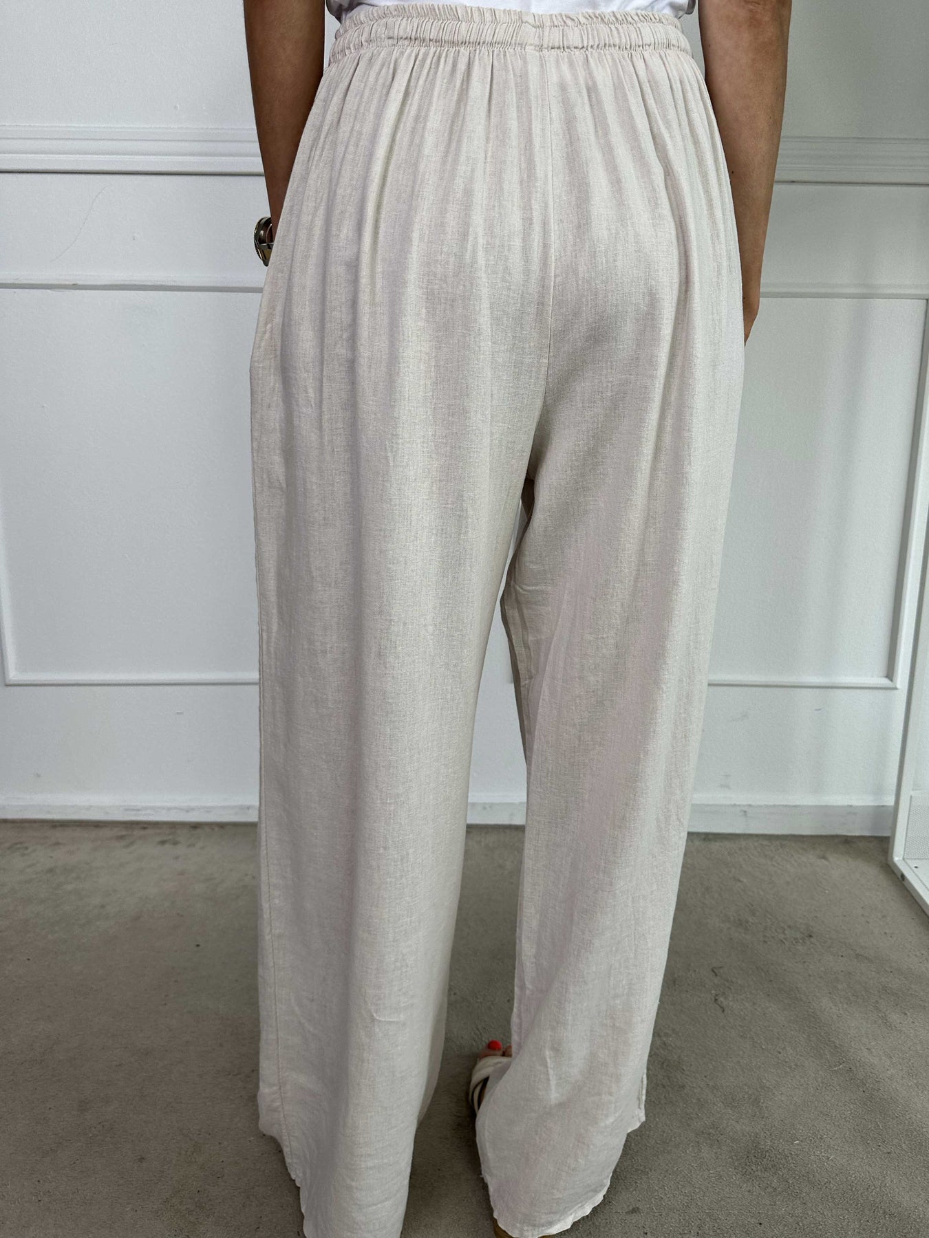 Lette bukser i viskose og hør. Der er elastik og snøre i buksekanten.
